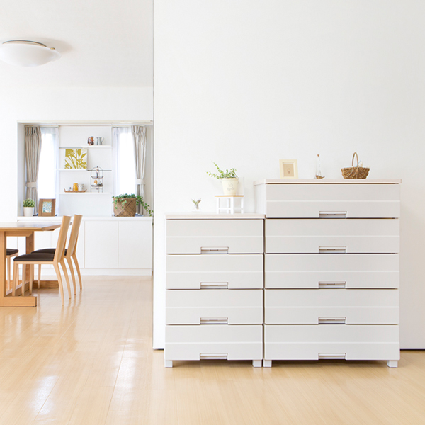 プラスチック製だと変形して引出しがスムーズに開かないというご不満もあったかと思いますが、天馬の「フィッツプラス」の普及に伴ってその認識は大きく変わっていったと感じます。フィッツプラスなら丈夫ですし、引出しの開閉もスムーズです。また、引出しロック機能が付いており、地震の揺れで引出しが飛び出す心配も少ないです。重量が軽く、仮に転倒しても致命傷には至らないという点でも安心だと思います。