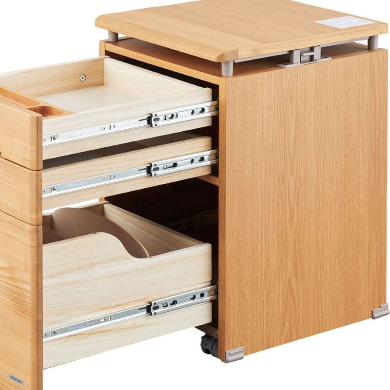 *昇降ワゴンである→天板は広くなるが、引出し部分が浅くなる?